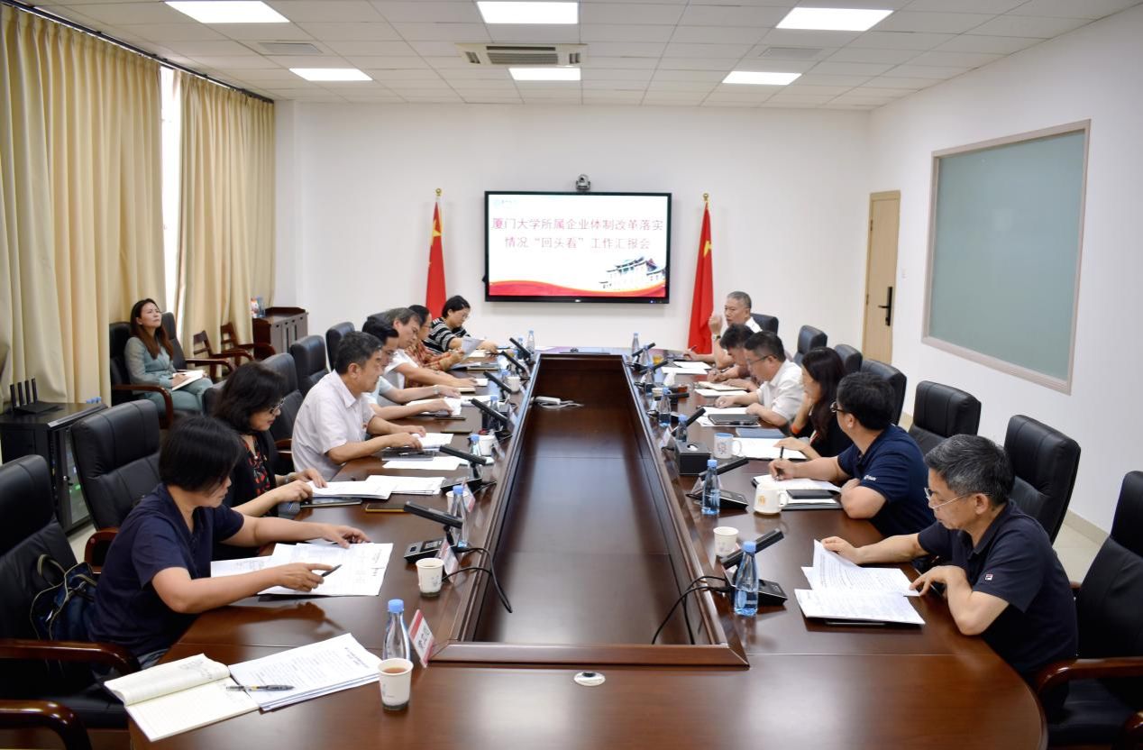 会上,资产公司总经理沈小平作《厦门大学所属企业体制改革落实情况“回头看”自查报告》,分别从我校所属企业体制改革完成情况、企业体制改革落实情况“回头看”工作开展情况、自查结果及自查问题整改情况、下一步工作思路等方面进行工作汇报。资产公司党委书记黄宇霞分别对资产公司党委全面从严治党主体责任整改落实情况、强化政治建设情况及疫情防控落实情况等方面进行工作汇报。