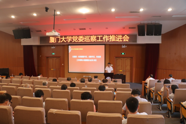 为统筹做好常态化疫情防控和高质量巡察全覆盖任务,根据中央有关精神和校党委部署,6月3日,厦门大学党委巡察工作推进会在化学报告厅召开。校党委副书记、纪委书记、校巡察工作领导小组副组长全海出席会议并作总结讲话。校纪委副书记、巡察办主任、校巡察工作领导小组成员林金枝主持会议。本次会议严格落实常态化疫情防控措施,会议开始前宣读了学校防控办的《大会安全要求》。