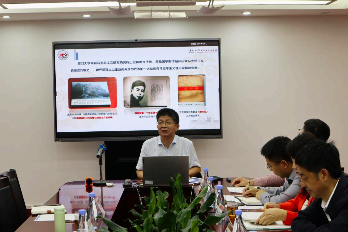 徐进功在会上介绍了马克思主义学院建设情况。他谈到,厦门大学具有马克思主义研究的光辉历史和优良传统,近年来学院发展和学科建设取得跨越式发展。学院党委作为“全国党建工作标杆院系”,坚持以一流党建和思想政治工作为学院的改革发展提供坚强保障。目前,学院已经拥有完善的马克思主义理论人才培养体系,拥有马克思主义理论一级学科博士学位授权点,以及马克思主义理论博士后科研流动站,学科综合实力进入一流梯队。徐院长还介绍了全国重点马克思主义学院申报的筹备情况。