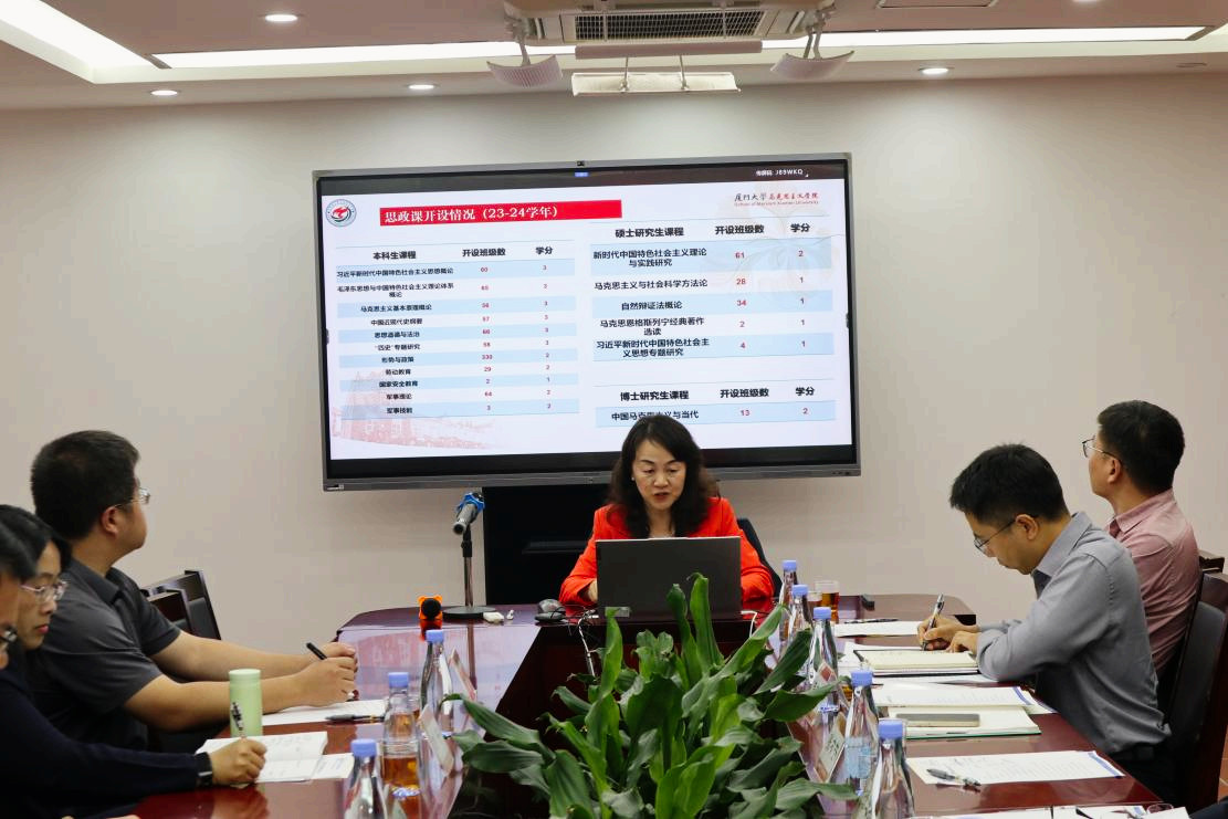 原宗丽重点汇报思想政治理论课建设与习近平新时代中国特色社会主义思想“三进”工作情况。她表示,学院不断完善思政课课程群建设,创新教学方式,推动思政课教学内涵式发展,加强思政课教师队伍建设,持续深化习近平新时代中国特色社会主义思想“三进”工作,取得了显著的成效。接下来,将进一步优化师资、突出主线、强化协同、加强保障,持续发挥思政课主渠道作用,推动习近平新时代中国特色社会主义思想入脑入心。