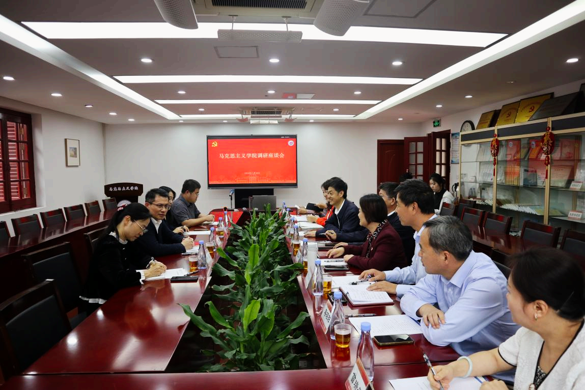 黄身勇充分肯定了马克思主义学院在党建引领、建好学院、建强学科各方面所作的不懈努力和取得的显著成效。他强调,加强新时代马克思主义学院建设,事关培养担当民族复兴大任的时代新人,必须进一步落实中央各项要求,坚持全校“一盘棋”系统谋划、抓好抓实。第一,坚持党对思政课建设的全面领导。牢牢把握中国特色社会主义高校的办学方向,深入学习贯彻全国教育大会精神,深学细悟习近平总书记在学校思想政治理论课教师座谈会上的重要讲话精神以及对思政课作出的重要指示精神,将思政课作为落实立德树人根本任务的关键课程、第一课程来推动建设。第二,推动思政课内涵式发展。强化顶层设计、统筹谋划,推进教学改革模式升级迭代,切实提升思政课的针对性和吸引力。对标思政课教师“六要”标准落实落细,鼓励教师走进学生群体进行学情分析,努力培养更多让党放心、爱国奉献、担当民族复兴重任的时代新人。第三,做大做强马克思主义理论学科,用好本硕博一体化培养平台,加大人才培养力度,以高水平学科建设支撑、服务、保障思政课教学的提质增效。
