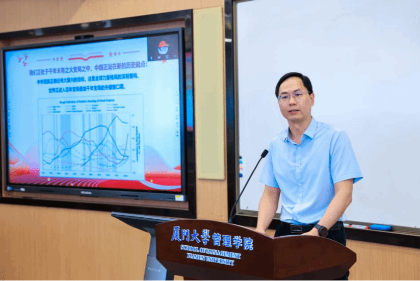 6月6日下午,2025年厦门大学管理学院赴西部、基层和国家重要行业就业毕业生出征仪式在嘉庚一404举行。厦门大学党委常委、副校长、管理学院院长吴超鹏出席并为同学们讲授思政课。管理学院党委副书记郑碧娇,学院毕业班辅导员黄劲夫、刘群、陈亦梅等出席活动。仪式由管理学院党委副书记周民钦主持。