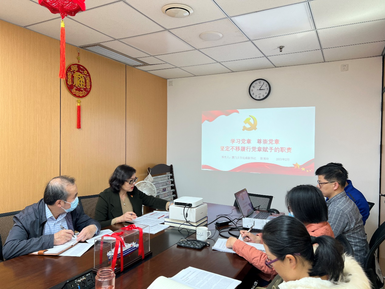 会上,支部书记陈雪玲指出,支部党员领导干部深入学习贯彻党的二十大精神,将党建与中心工作深度融合,结合自己工作实际、学习体会,精心准备了专题党课,利用支部平台让全体支部党员有所启发、有所收获,达到相互促进,共同提高的目的。全体党员要深入学习宣传贯彻党的二十大精神,贯彻落实党中央和中央纪委国家监委以及校党委新部署新要求,用彻底的自我革命精神和钉钉子精神推进纪检监察工作各项任务,为学校深化综合改革、全面推动“双一流”建设提供坚强保障。
