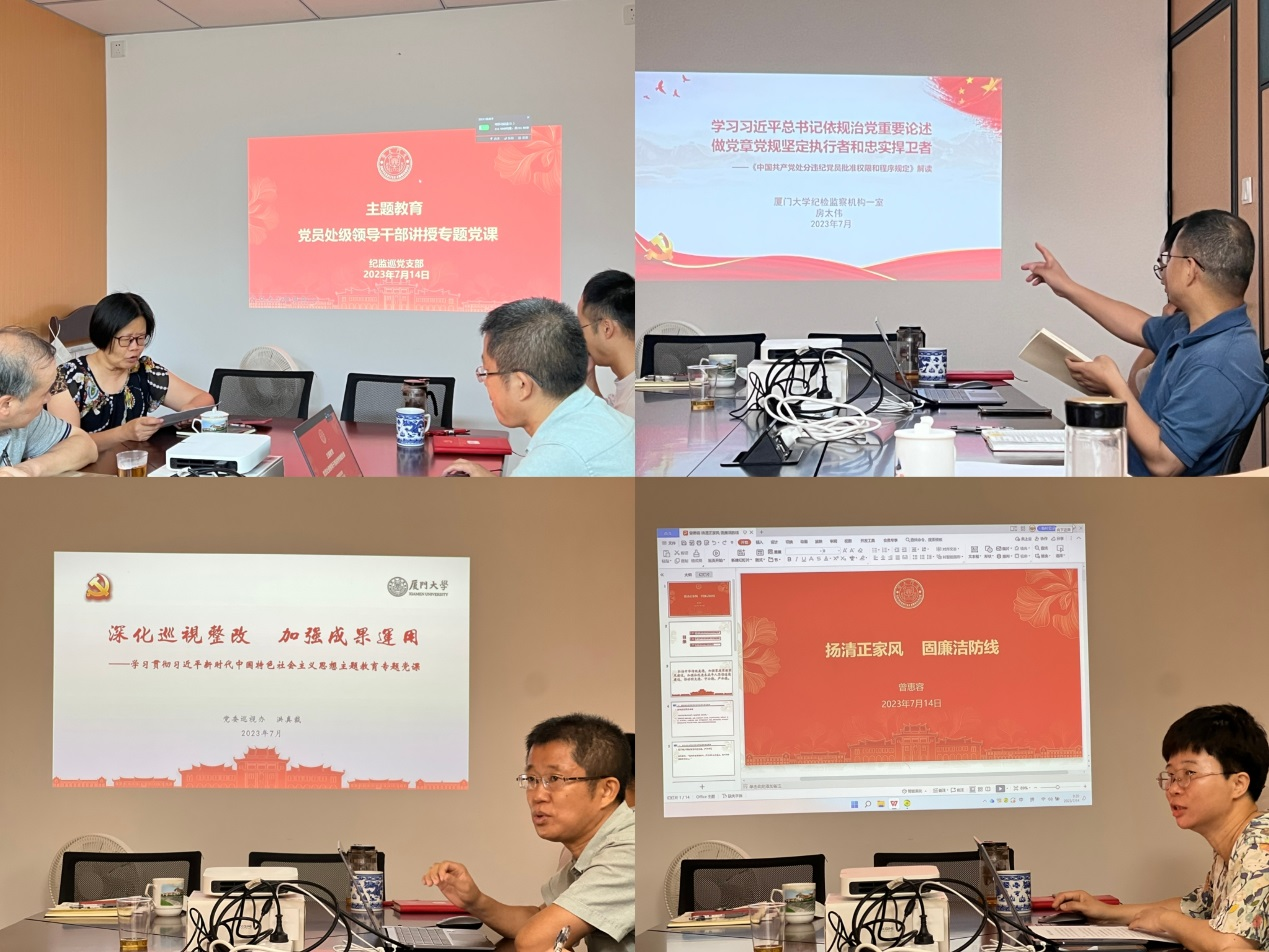 为进一步深刻领悟习近平总书记“以学增智”重要要求,持之以恒加强党的创新理论武装,2023年7月14日上午,纪监巡党支部继续开展党员处级领导干部讲党课主题学习活动。活动由校纪委副书记黄宝秋主持。