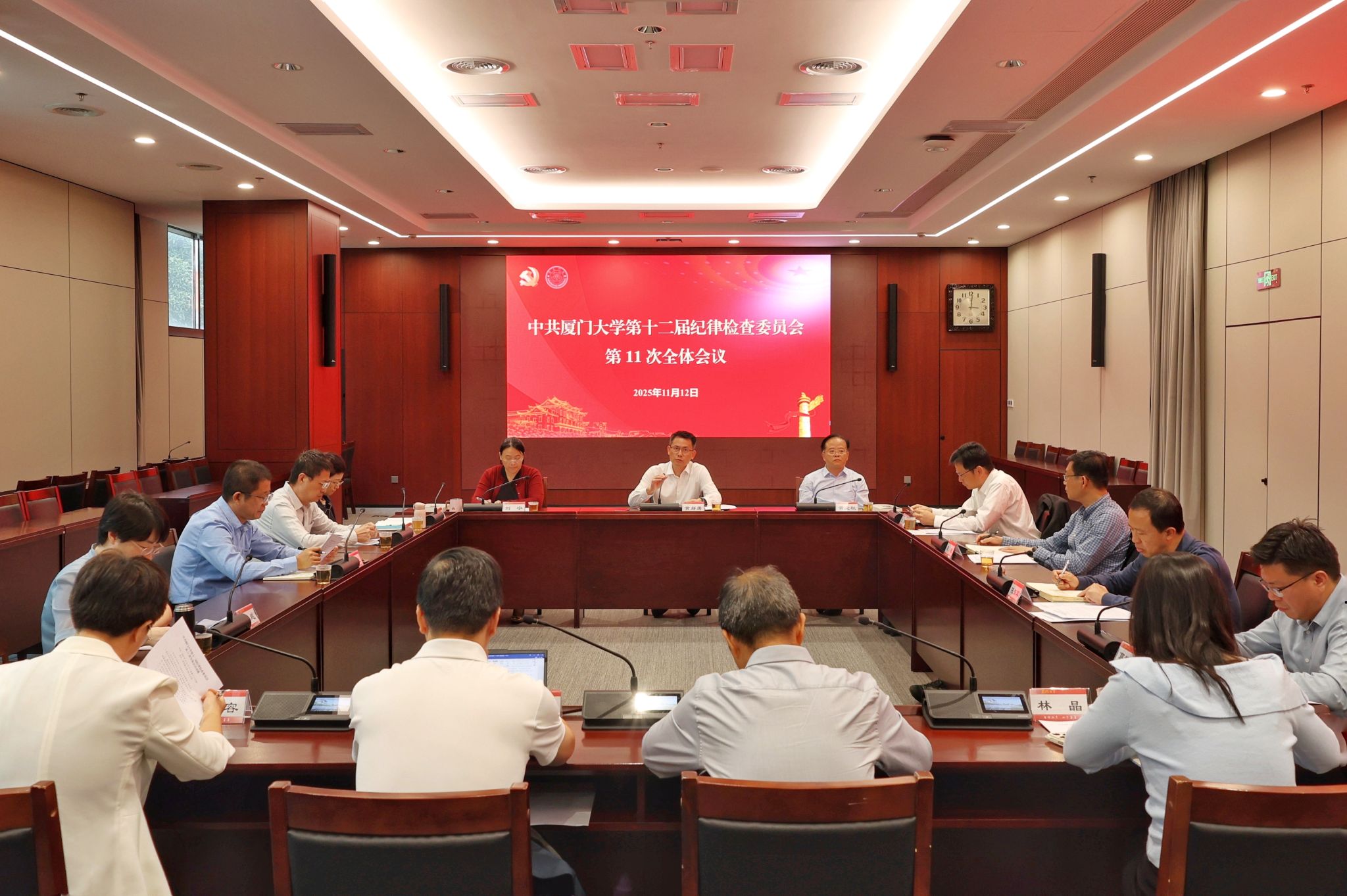 11月12日下午,中共厦门大学第十二届纪律检查委员会第11次全体会议在颂恩楼220会议室召开,传达学习党的二十届四中全会精神。会议由校党委副书记、纪委书记、国家监委驻厦门大学监察专员黄身勇主持,校纪委委员参加会议。
